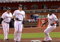 Willie Harris hits a double to clear the bases. However, Nyjer Morgan, the runner on 1st, misses home plate after running into C Bryan Anderson. Ivan Rodriguez, who just scored, pushes Morgan back toward the plate, and Nyjer touches home before being tagged.