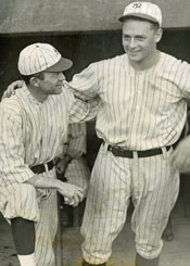 ![]() ![]() ![]() L-R: Miller Huggins, Waite Hoyt, T. L. Huston, Jacob Ruppert If someone was making book on who would hit the first World Series home run at Yankee Stadium, the overwhelming favorite would have been Babe Ruth, who had clouted 41 four-baggers in the new stadium that season. Instead, it was a visiting Giant who would one day manage the Yankees to ten American League pennants.